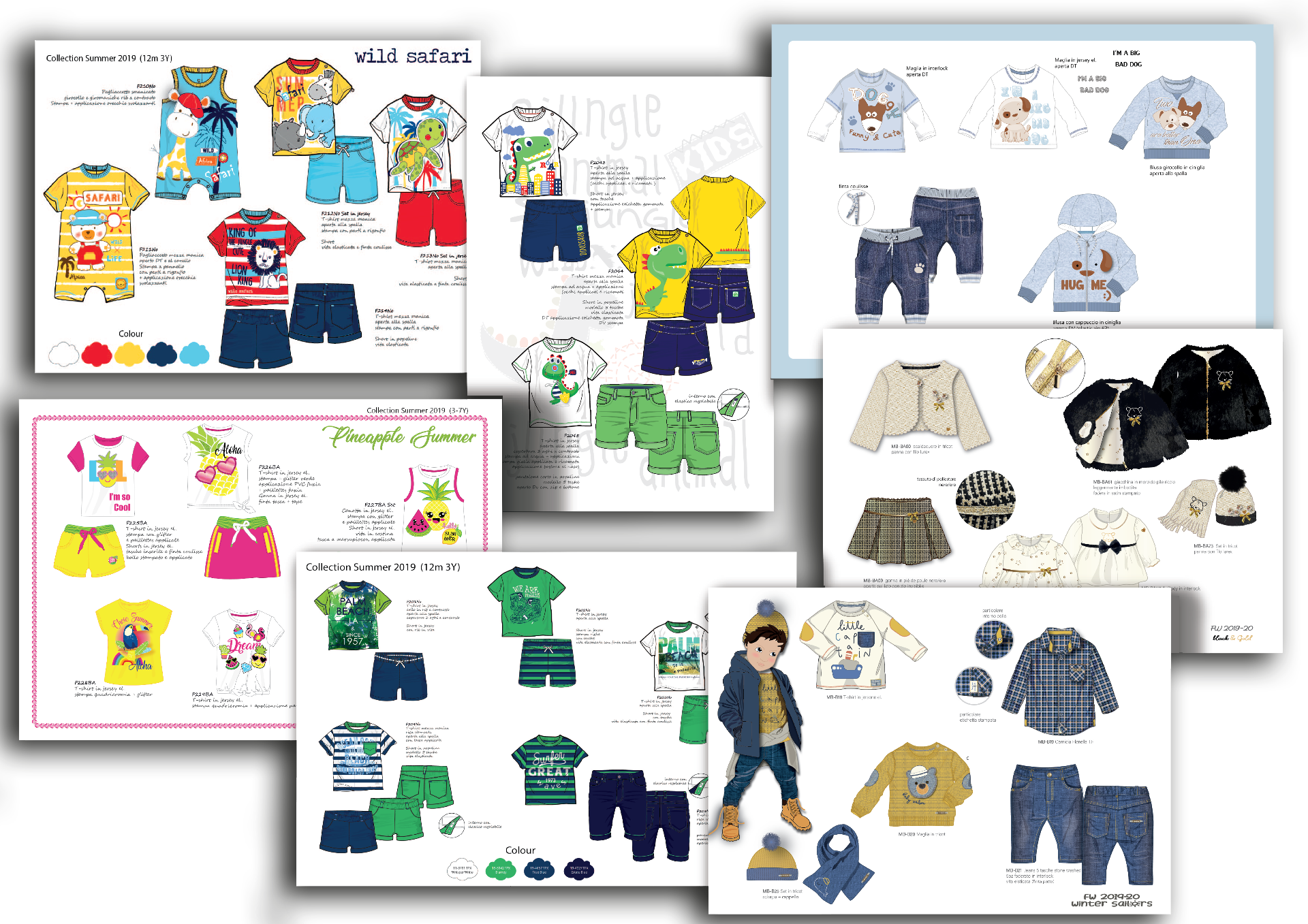 Rappresentiamo il prodotto moda in modo globale con collage di immagini, tessuti, materiali e di tutte quelle informazioni relative al target, mercato di riferimento per la presentazione della nuova collezione.
